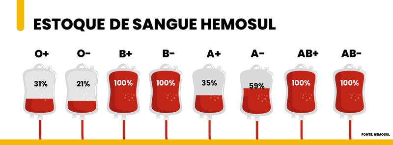 Veja o atual estoque de sangue no Hemosul: