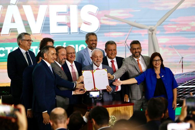 O presidente da República, Luiz Inácio Lula da Silva, participou, nesta terça-feira, 9 de abril, no Palácio do Planalto, da cerimônia de assinatura da Medida Provisória das Energias Renováveis e da Redução Tarifária na região Amazônica. O evento também contou com o vice-presidente e ministro do Desenvolvimento, Indústria, Comércio e Serviços (MDIC), Geraldo Alckmin e os ministros Waldez Góes, da Integração e do Desenvolvimento Regional, Alexandre Silveira, de Minas e Energia, Rui Costa, da Casa Civil) e Fernando Haddad (Fazenda).
