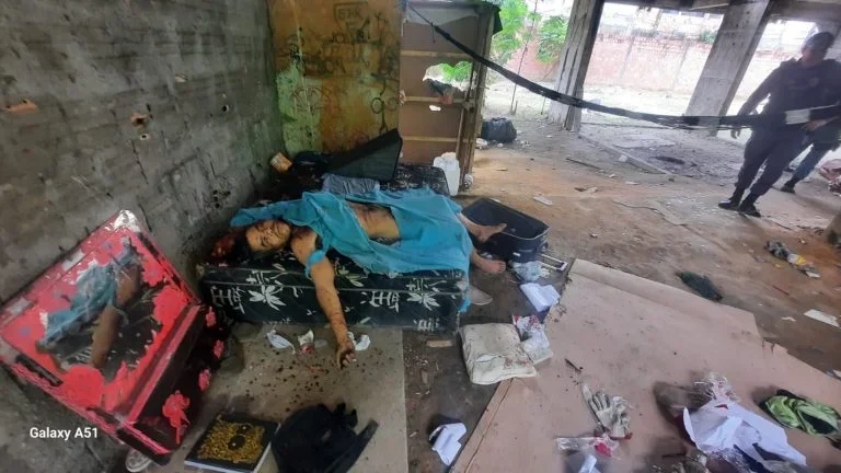 Manaus (AM) – Na manhã desta terça-feira (14), dois moradores de rua foram brutalmente assassinados dentro de um prédio abandonado localizado no bairro Chapada, zona centro-sul de Manaus. As vítimas, identificadas preliminarmente como “Sandra” e “Davi”, foram degoladas com golpes de terçado, que foi encontrado próximo aos corpos no local do crime.
